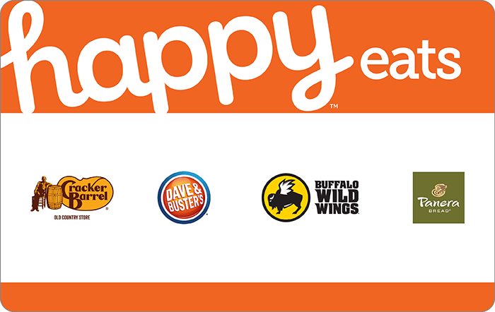Happy Eats gift cards for any amount. August 12 2020. Up to 5 cash back Use the Happy Eats gift card at any Jamba Juice Dave Busters Panera Bread Burger King or Cold Stone Creamery location in the US.